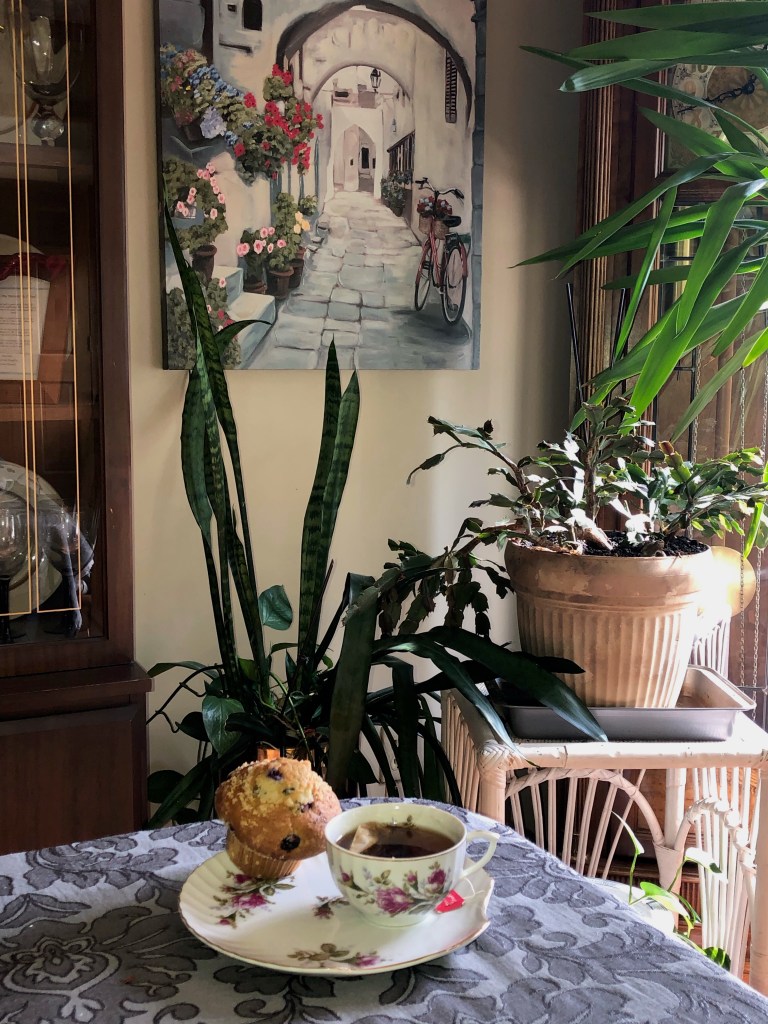 This past year my Sweetie and I take a long walk every afternoon. Afterwards, we always have our tea time. It’s at his house, not mine, so no fancy teacups or delicate china there.