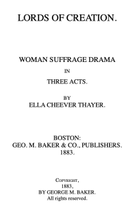 Emilie’s father, George Baker, published Ella’s next work. “Lords of Creation” (1883) was an early suffragette play that anticipated another change–the balance of power between the sexes.