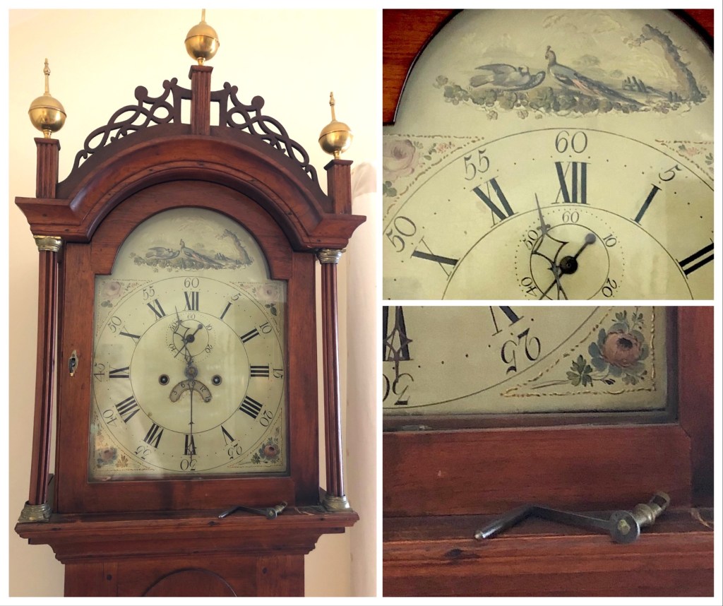 “Handmade” is an interesting category when you remember that everything was handmade before a certain time in history. As such, early items represent individual craftsmanship often not seen today. This grandfather clock spent decades in Stone House, then Lexington, and now the North Shore of Massachusetts.
