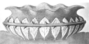 “For the table, a low bowl has the edges turned outwards so as to form a support to the stem, which also finds further support in the interior of the bowl, these stems in turn helping to support the centre flowers.”