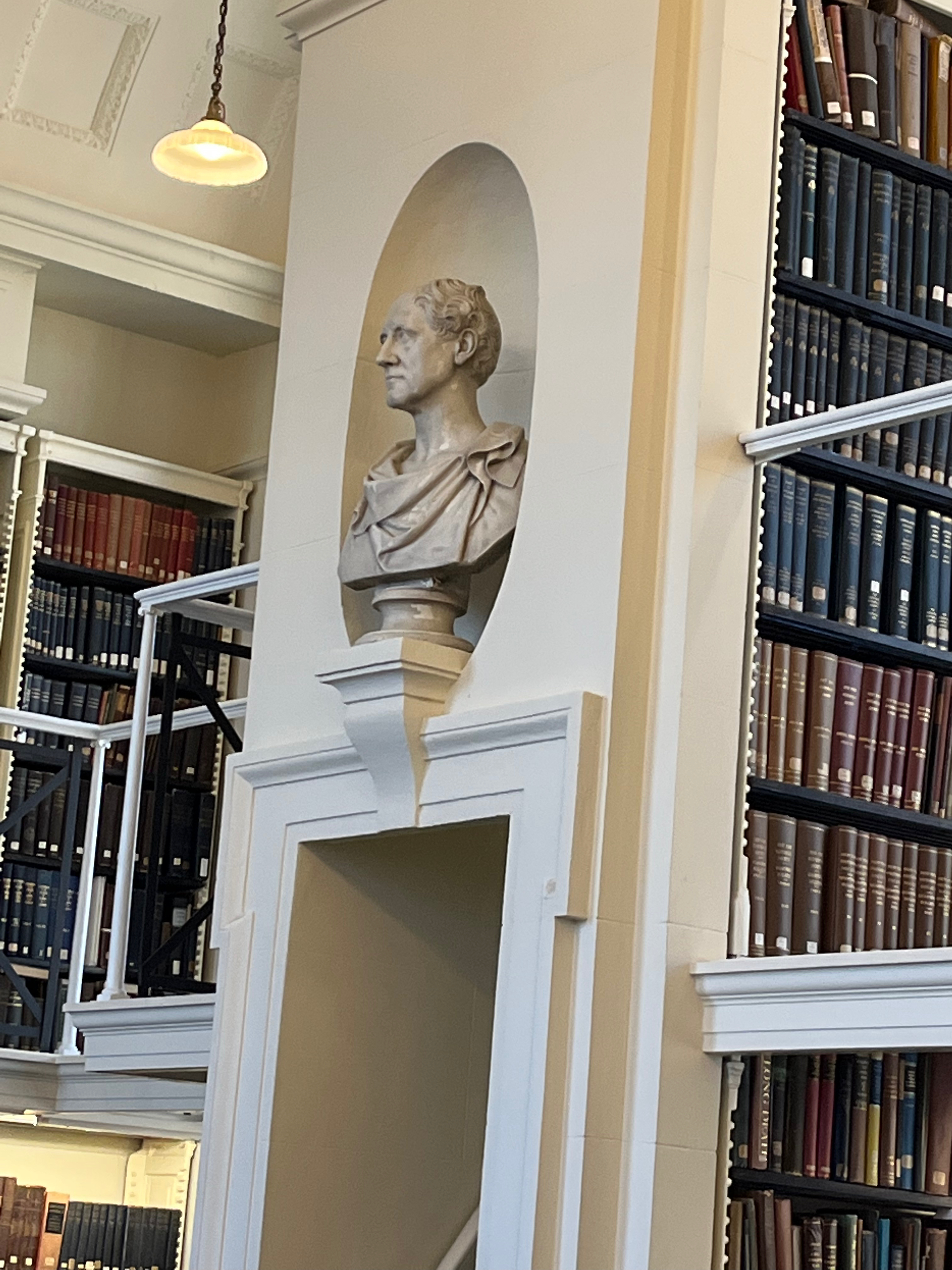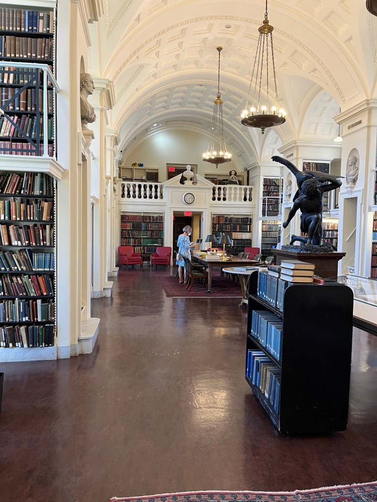 The ivory walls, arched ceiling, palladian windows, and alcoves are as they have been for over one hundred years. The room is beautiful but impersonal. Models of perfect silence, the fifth floor’s marble busts look serenely into the distance.