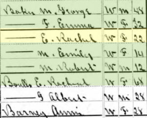 There were two “Emilys” in the house, she and her mother, Emily Frances Baker, and you might imagine that to be the reason that our Emilie was called by her first name, “Maria.” But there were two Rachaels in the house, also, Emilie’s sister and their grandmother, and both are listed as “Racheal.”