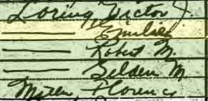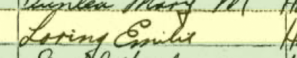 Once she was married, Emilie used “Baker” as her middle name, and she appeared as “Emily B. Loring” in the 1900 and 1910 censuses: