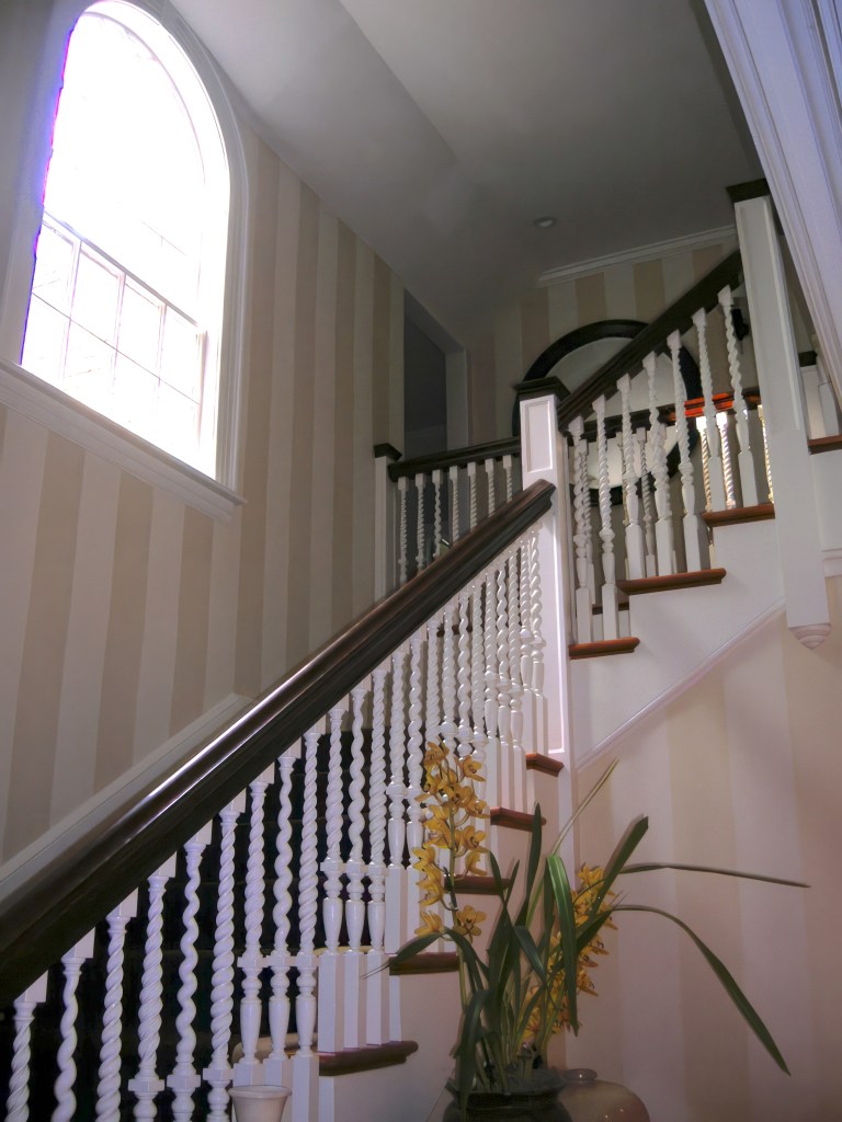 The present residents include four preteen girls with impeccable manners that Emilie would have appreciated. The house is fresh and light, and I was allowed to explore areas beyond the main floor. When the Lorings lived there, the back stairs led from the children’s second-floor nursery to the maids’ quarters on the third floor. Throughout the home, fireplace mantels have pretty wreaths and adornments.