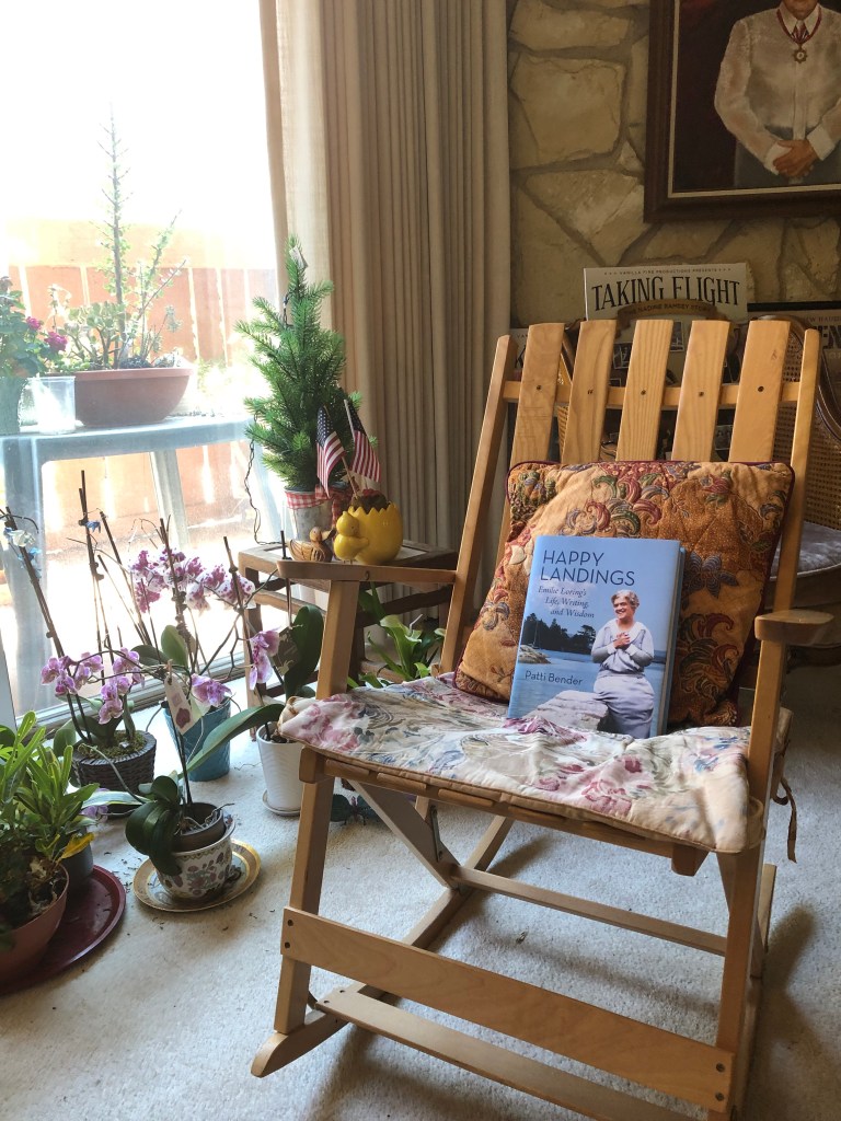 Fellow biographer Raqui Ramsey lives in Los Angeles now, but she and her husband, Ed, had good friends in Blue Hill–Tony and Nancy Butler–so she has been here often and has many fond memories of this town where Emilie Loring lived. Now, “I continue to enjoy reading the book sitting in my rocking chair in the afternoon and looking at both my inner and outer garden with all blooming orchids and roses.” We’ll have tea together in 2024 when the film of her current biography, Taking Flight: The Nadine Ramsey Story debuts in Hollywood!