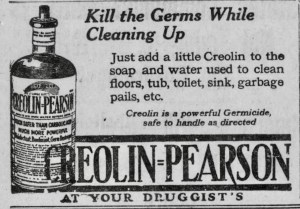 I had never heard of Creolin, had you? It’s a disinfectant derived from wood tar. Dr. Austin Flint II observed in the 1880s that a concentration less than 2% was effective at controlling bacteria in wound dressings. (Connection Moment: This was the son of Dr. Austin Flint, Sr., in whose Cape Cod home Emilie lived in 1890.)