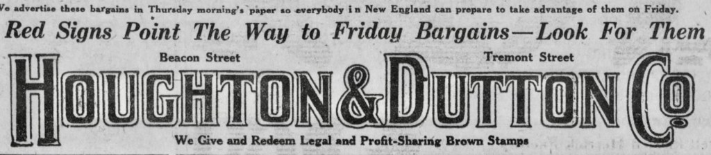 As it turns out, yes. Businesses gave stamps to customers at a usual rate of one stamp per ten-cent purchase. These were saved in books, and one thousand of them could be redeemed for two dollars in cash or $2.50 in merchandise. For faster rewards at Houghton & Dutton Co., a special shopper’s card of one hundred stamps could be redeemed for 25 cents in merchandise.