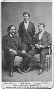 Victor was clearly the “star” of that photo, but we don’t know the context. Was it sincere? Tongue-in-cheek? I’m reminded of the photograph George M. Baker took of three famous humorists of his time–Mark Twain, Josh Billings, and Petroleum V. Nasby–with completely deadpan expressions, clearly tongue-in-cheek.