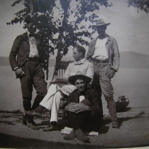 Victor is at a family picnic in this photo. It’s a rare thing to find him out of his suit jacket, but there are a few examples. One is on the boat in the photo of Emilie “navigating,” when he removes his coat but retains his suit vest. Below is another, when he is working to clear Loring Avenue. I wonder if he owned any patterned shirts. He appears well-dressed even when using a crowbar on a trussed up rock. By the way, he was in his seventies at the time.