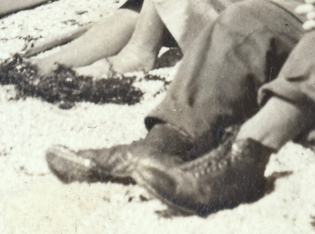 In the second photo, Emilie is barefoot on the beach, but Victor retains his lace-up, leather shoes–sans socks. I’m with Victor on this one. Blue Hill beaches are rock, not sand, and romantic as it is to sit on them barefoot, when you get up to go, you want something on your feet.