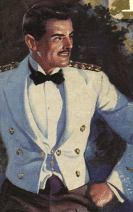 While we’re here, take a close look at Victor’s left hand. He is wearing a seal ring, as did many of Emilie Loring’s male leads. Used to seal letters and documents with an impression on wax, seal rings were often heritage items bearing a family crest. I wonder where this one is now.