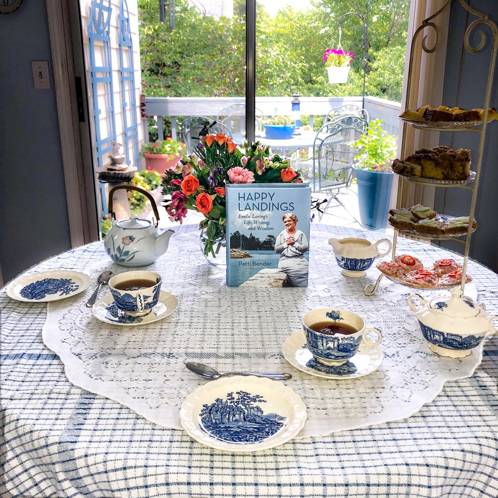 Over the years, we’ve seen teas in a canoe and in an elegant sitting room, solo teas and family gatherings, tea served in porcelain and in paper cups, with one “Emilie” book or stacks of them, and now, with Happy Landings, too!