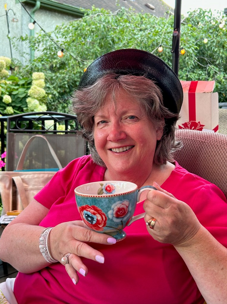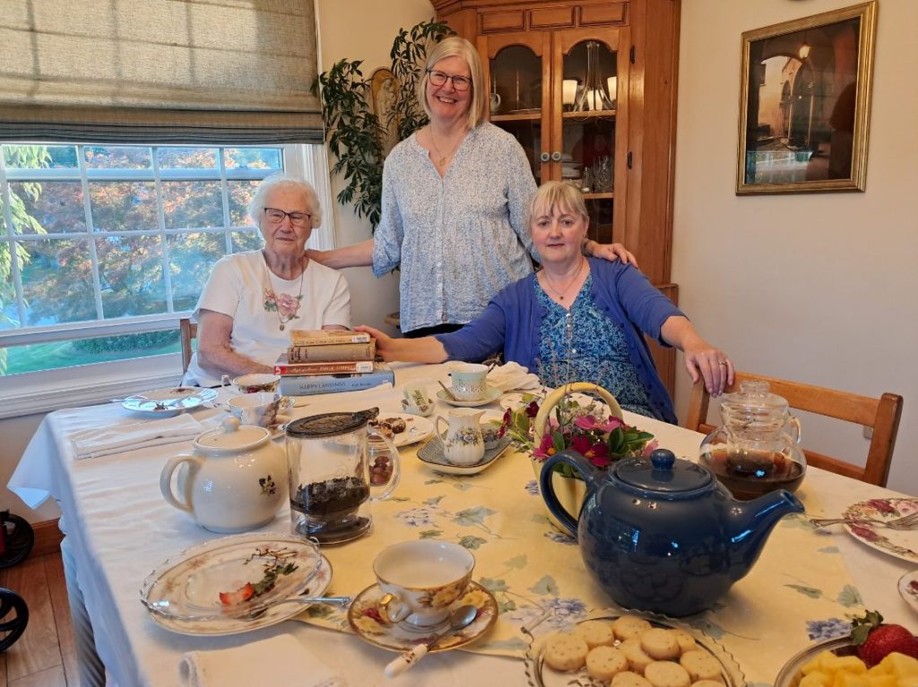 Debbi writes: My sisters and I had our Emilie Loring tea this afternoon and we celebrated our Mother’s 98th birthday also on September 5th (she passed away in August 2023).