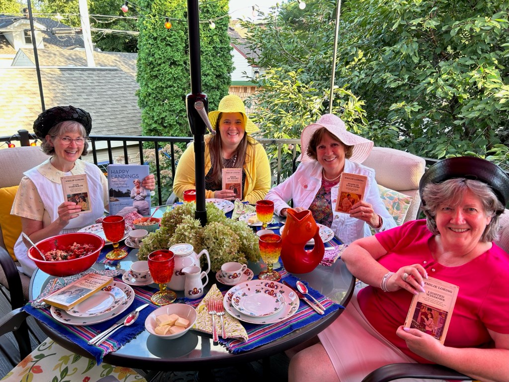 Cindy writes: “Seven of us gathered around the tea table to celebrate Emilie Loring’s birthday and her writing career. Patti Bender’s biography and a stack of Emilie’s books were on the corner of the table amid the tea cups and sweets and right next to the guest of honor, my 93 year old mother, Pat, who is a voracious reader.