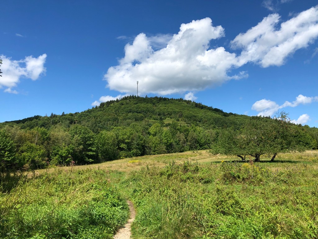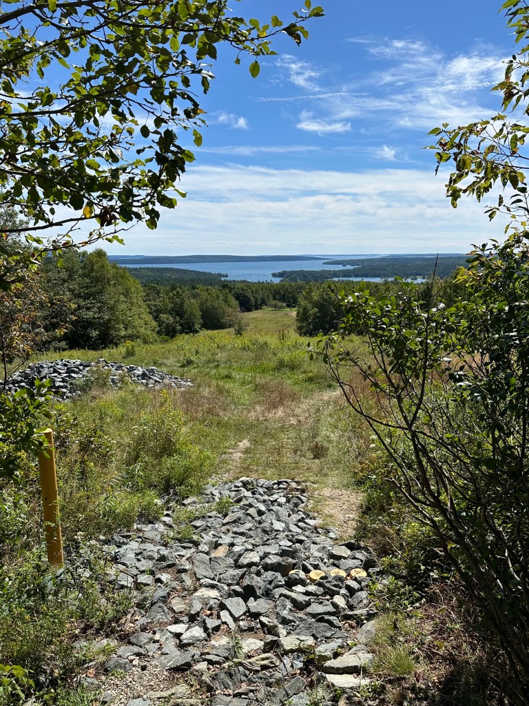 Friends since kindergarten, Donna and I ascended the Blue Hill Mountain Trail and assembled our tea at the summit. It was a perfect day to make the hike–blue skies, seventy degrees, and a cooling breeze.