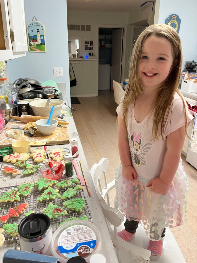 But Emilie was right about the beautiful things being as real as the challenges. My granddaughter made Christmas cookies with me this week. The hospital, computer, and upheaval–poof! All gone in the joy of that smile!